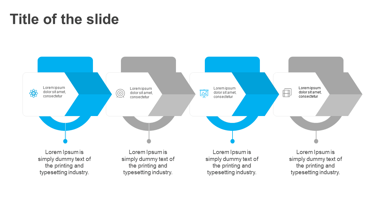 The 4 Arrows Timeline Template is a set of chevron PowerPoint diagrams. The multi-stage diagrams present a linear sequence of processes by aligning arrows horizontally