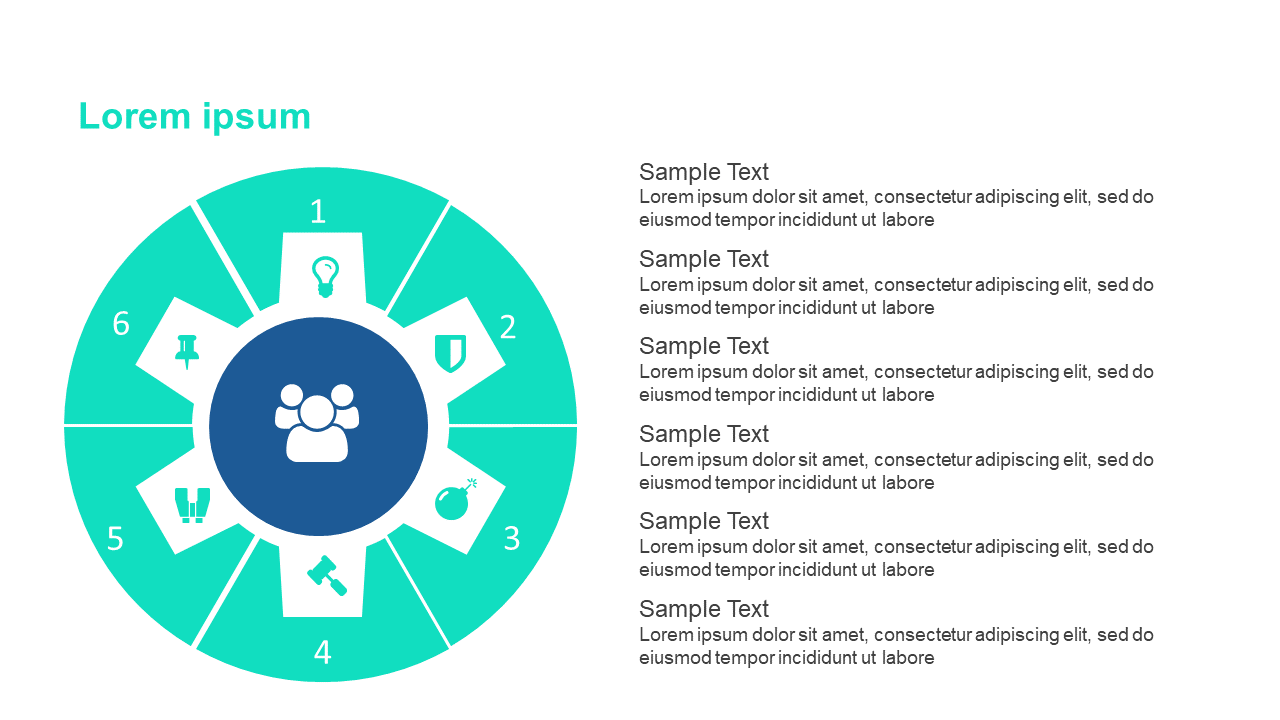 The circular diagram has a simple and clean visual to present a range of process cycles. The 6 categories PowerPoint diagram is a go-to-template for presenters, assisting them in an effective content delivery