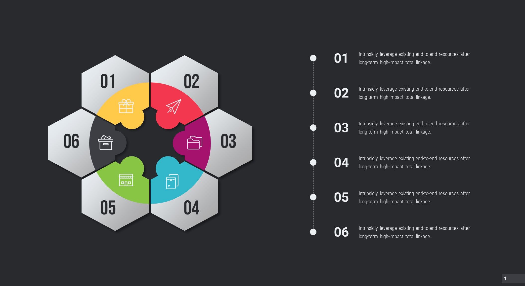 6-Phase Hexagonal Diagram PowerPoint Template features hexagonal infographic diagram to prepare professional and educational presentations