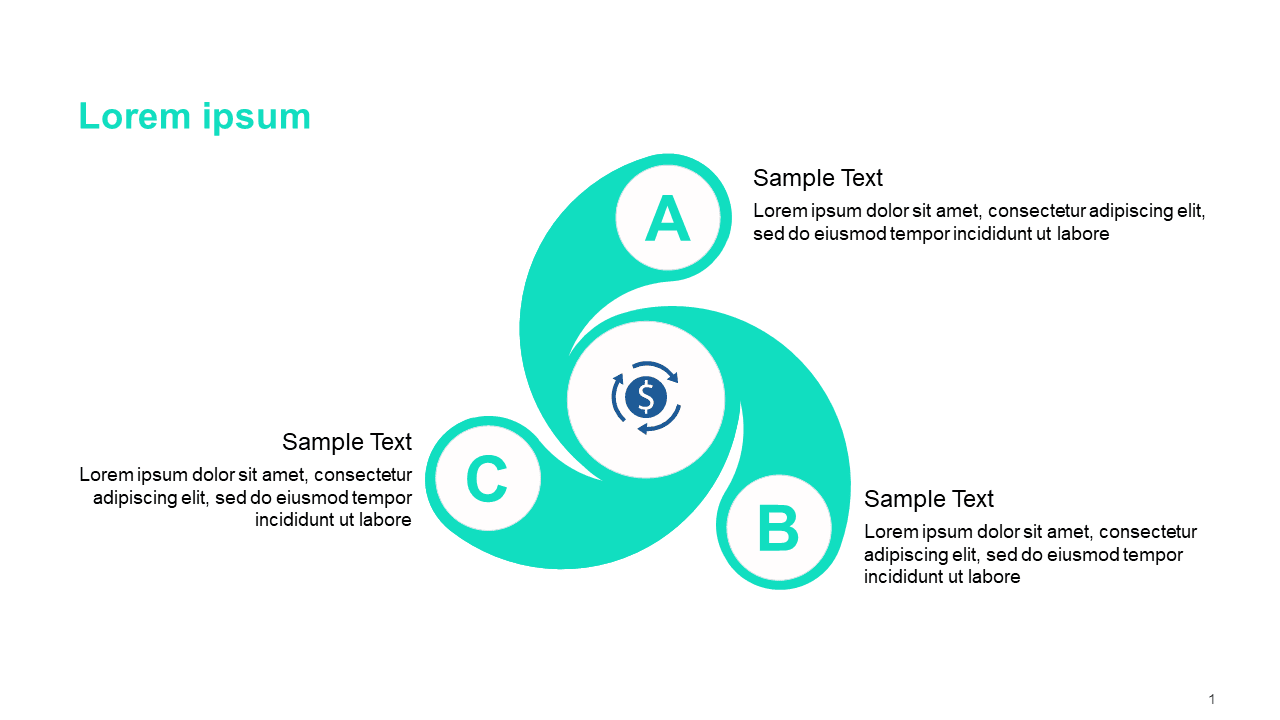 3 steps circular Diagram for PowerPoint is a minimal design presenting three segments of core idea