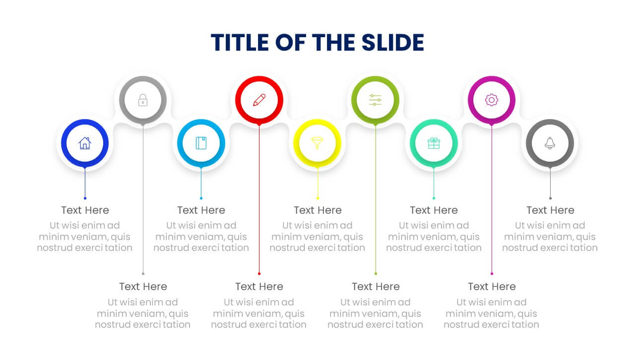 The Horizontal Circles Roadmap Timeline Template is an multi color infographic presentation design