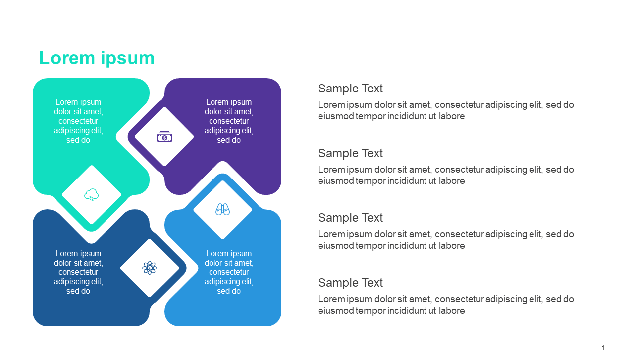 The 4 steps Integrated Process Diagram Template for PowerPoint is a professionally crafted design ideal for process descriptions or quadrant models