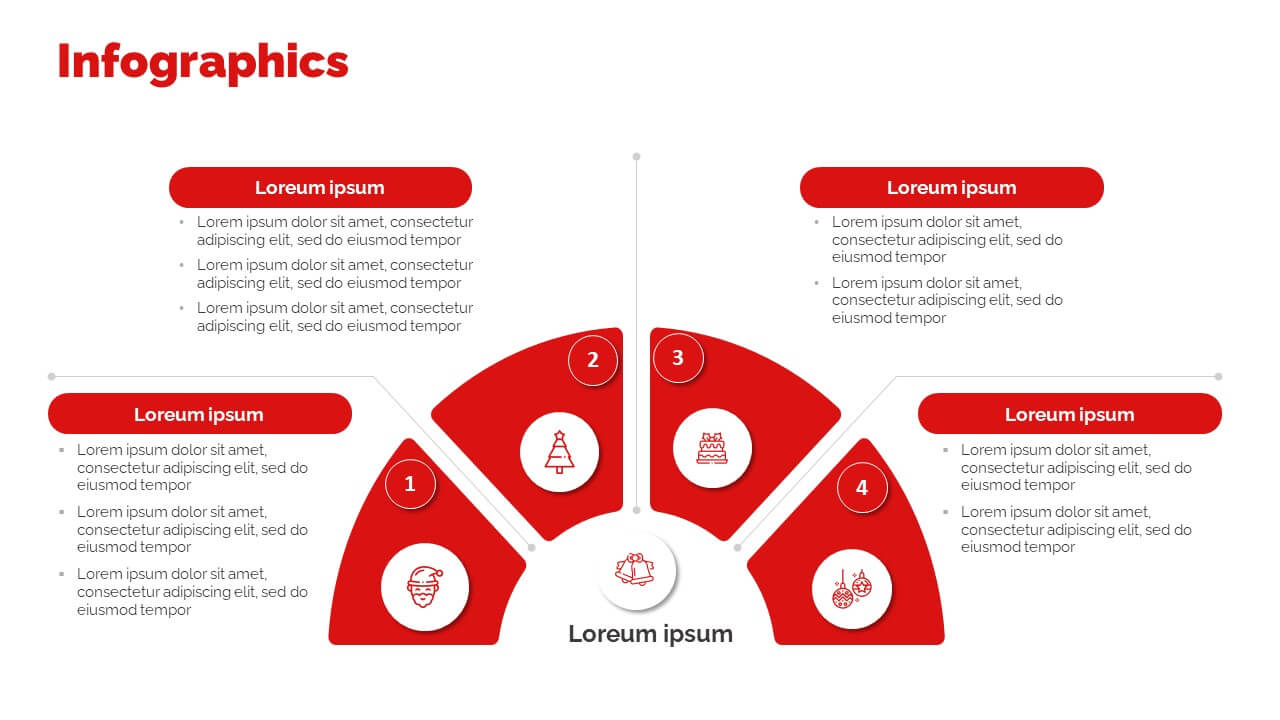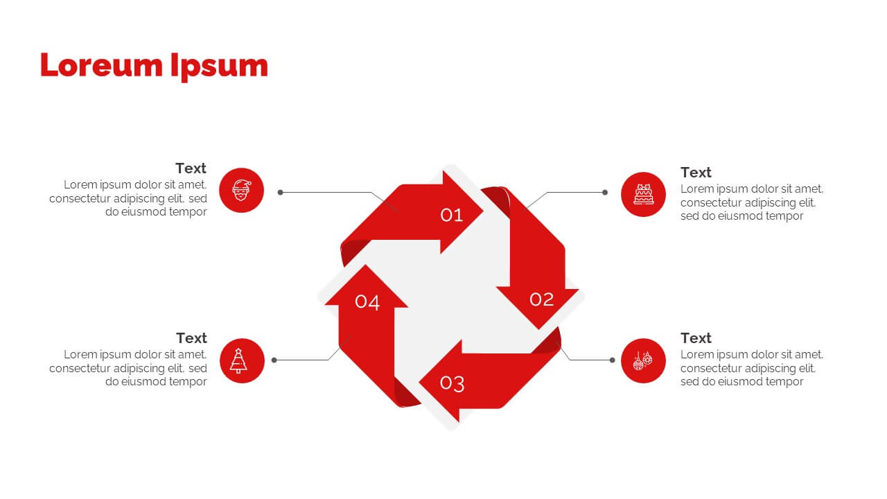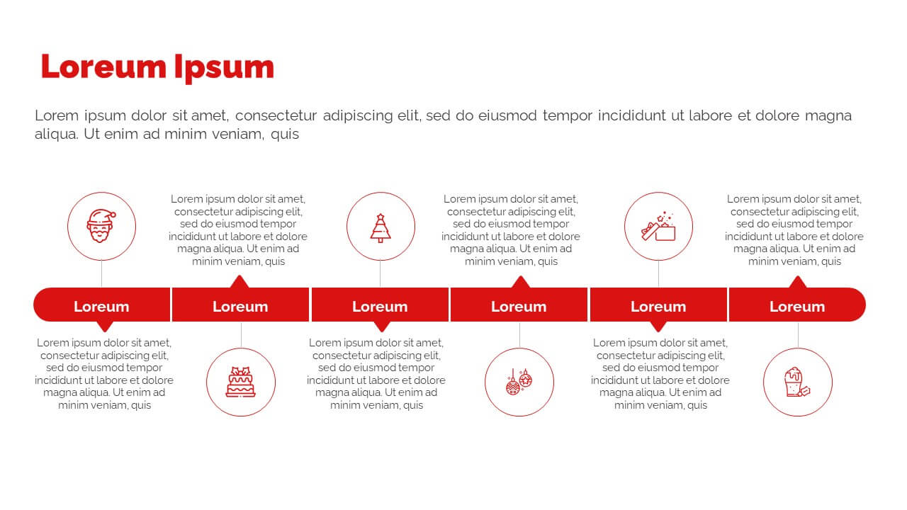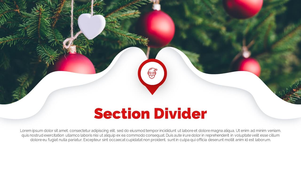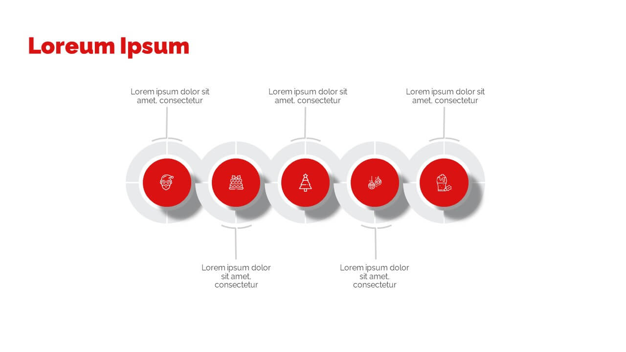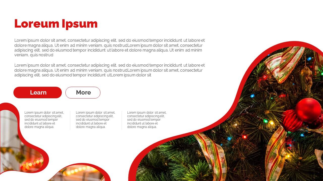 Enjoy this free Powerpoint template for your Christmas presentations. This design uses the perfect color scheme to convey the Christmas mood: red and white.