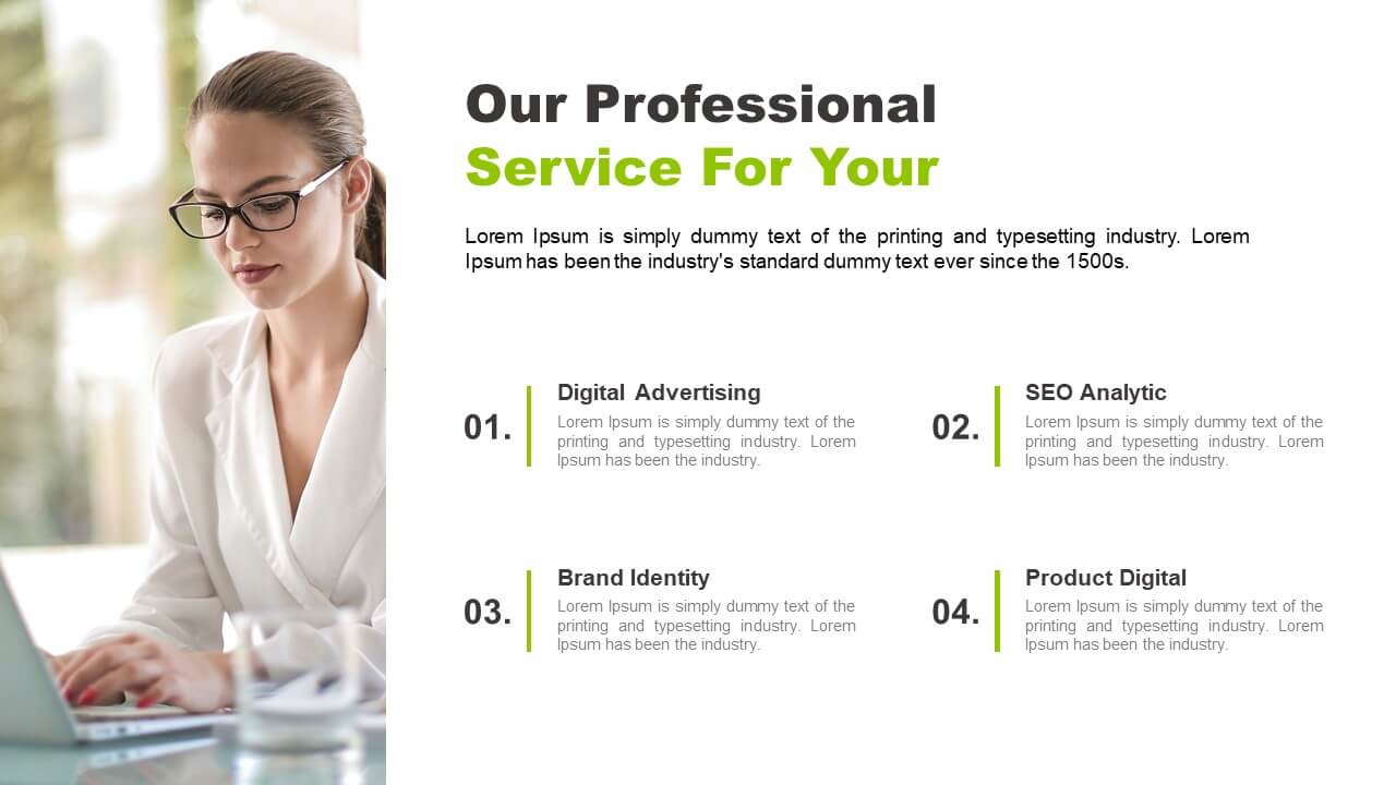 Our services slide is used for Introducing service offerings. Company can add up to 4 services using this slide