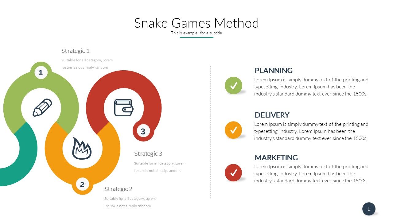 Snake Diagram for PowerPoint is a 3 stages process PowerPoint which can be used for a business strategic planning